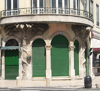 Na R. da Graça, algumas fachadas interessantes com azulejos, o Bairro Estrella d'Ouro de Agapito Serra Fernandes, aquele prédio com a bandeira verde :) e, sendo como é um bairro de tradições fadistas, a Tasca do Jaime, com fado vadio aos sábados, domingos e feriados, das 16h às 20h, salvo erro, que ninguém me encomendou a publicidade...