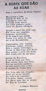 Percurso concomitante de vida e ruas - uma letra muito curiosa de João Linhares Barbosa para o repertório da actriz-cantadeira Berta Cardoso.