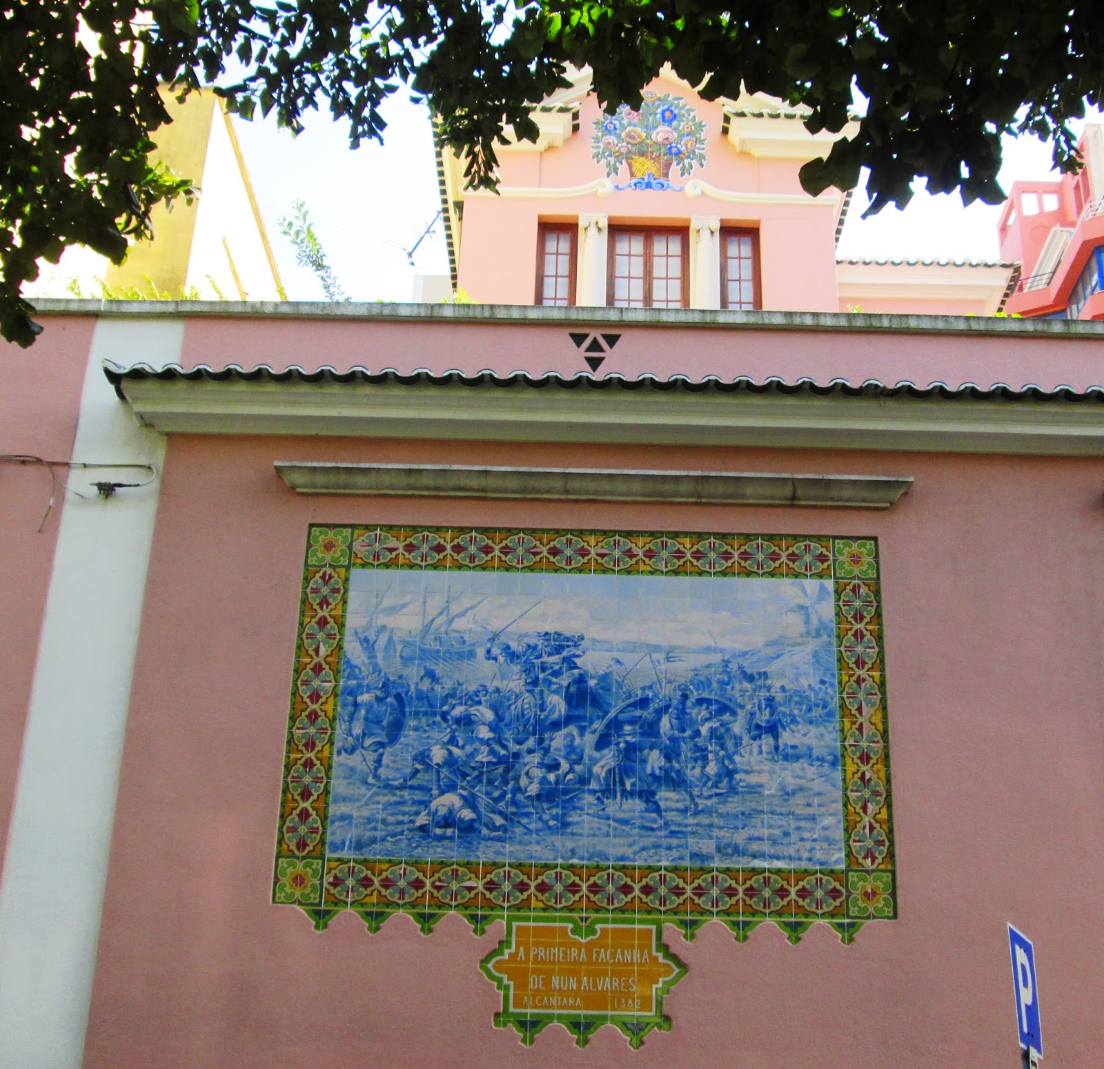 Este belíssimo painel de azulejos de Jorge Colaço, que representa a primeira façanha de Nun'Alvares, encontra-se na Avenida que leva o nome do Capitão-Piloto Aviador Óscar Monteiro Torres, que morreu na Flandres numa manhã de nevoeiro...