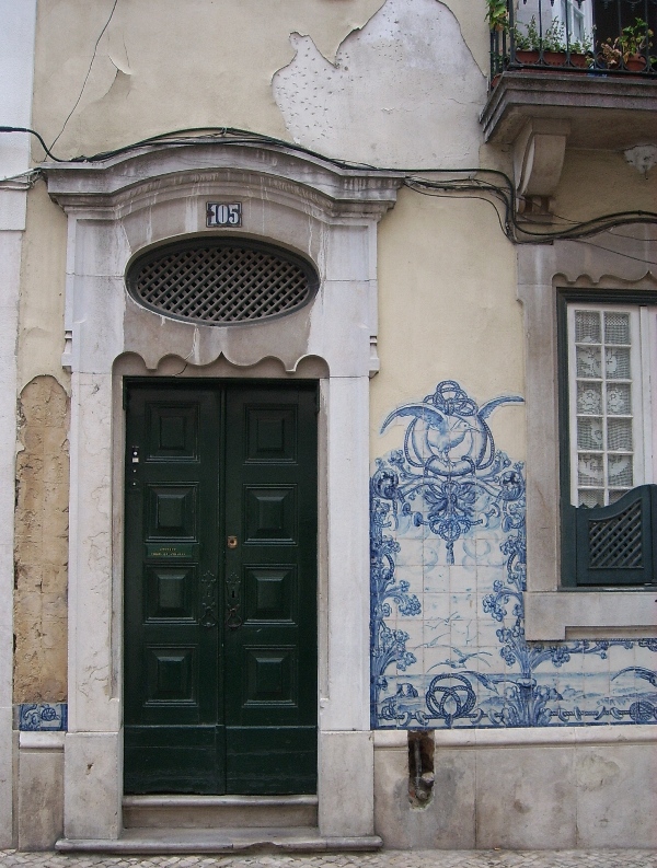 Assinalo, ainda, no nº 105, um encantador edifício antigo (relacionado com o conhecido Michel), este belíssimo painel de azulejos, infelizmente já incompleto... (teria sido subtraído???!!!...)